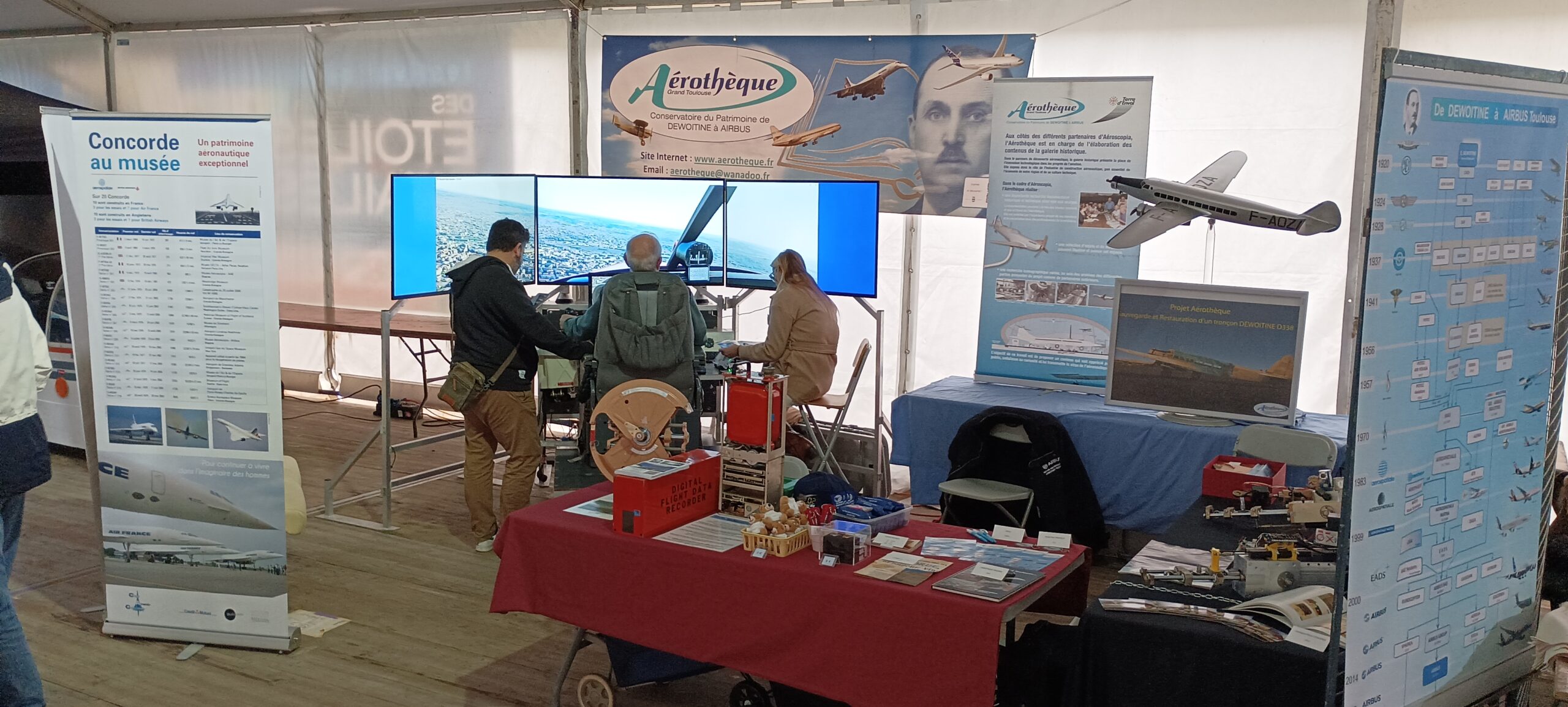Ce festival 2023 s’est parfaitement déroulé. Nous étions au musée l’Envol des pionniers à Toulouse Montaudran, près de ce qui reste de la piste. De nombreux passionnés se sont succédés tout au long de ces deux journées sur notre stand et particulièrement sur notre simulateur de vol.