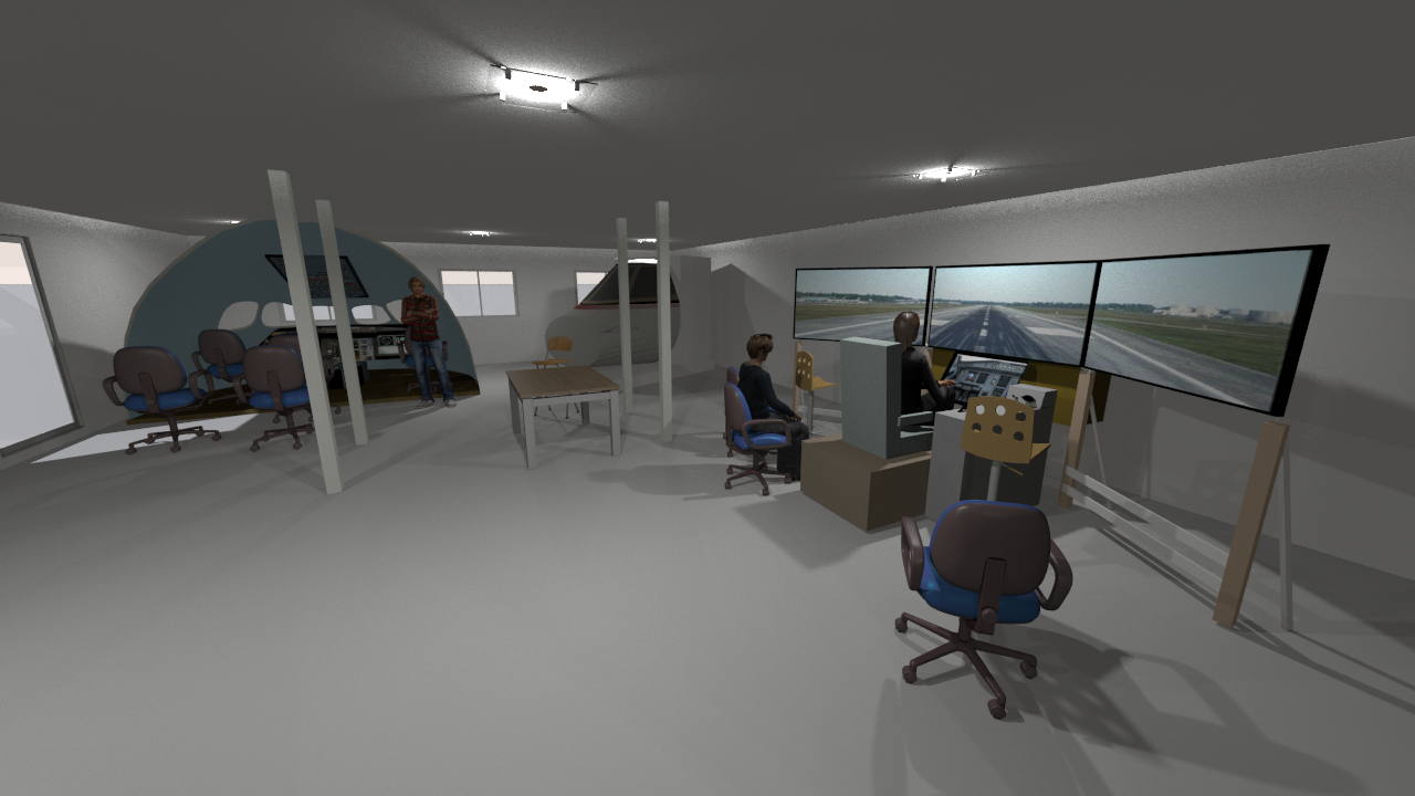 On peut voir le MTD 340 au fond à gauche, le simulateur Corvette au fond à droite et la station de démo sur la droite. Il restera assez de place pour le simu A350 non représenté ici.